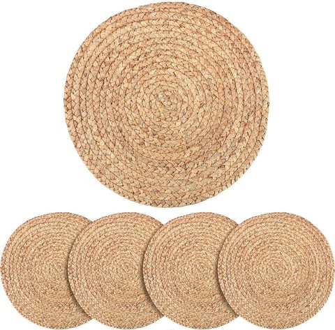 低Moq織りプレースマット天然水ヒヤシンスプレースマットラウンド編組籐テーブルマット