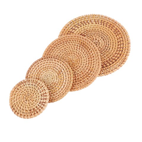 天然コースターホルダー不織布プレースマット4ノンスリップポットテーブルマットドリンクラウンド籐プレイスマットティーセットコースター