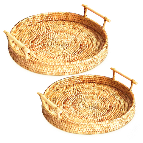 ที่ราบสูงเอเอ็นโรนีเทลเลอสต็อก Plateaux De Service Ronds Maille Naturel REC Poignees La Nourriture Pain Bambou Et